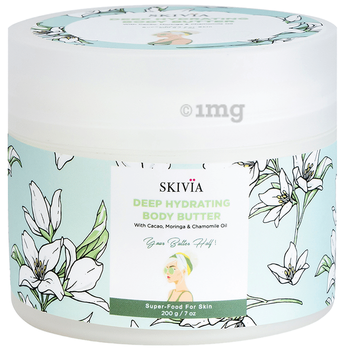 Skivia Deep Hydrating Body Butter provides nourishment to extremely dry skin and replenishes the hydration levels to make it soft and supple. It is enriched with cocoa butter, shea butter and other beneficial ingredients that improve the skin’s elasticity and reduce the appearance of scars. Skivia Deep Hydrating Body Butter gives your skin intense nourishment and moisturisation and leaves it feeling softer, smoother and fragrant. The added benefits of moringa help in fading out blemishes and give an even skin tone.