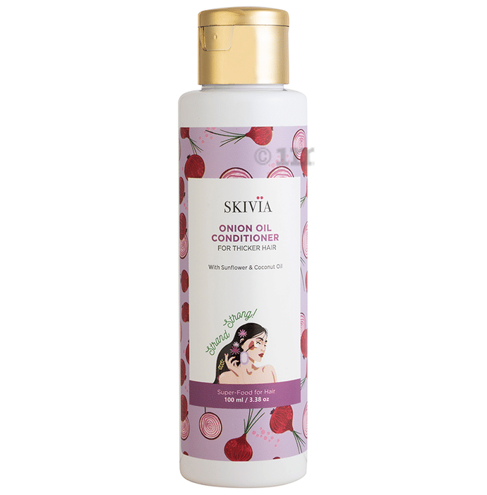 - Take a small amount of Skivia Onion Oil Conditioner on your hands and massage it gently on your hair from mid-length to tips