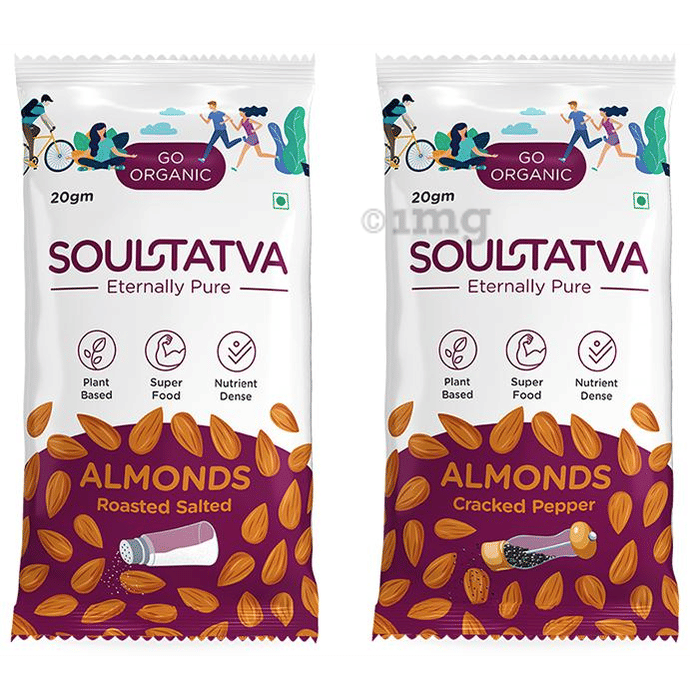 Information about Soultatva Combo Pack of 6 Almonds Roasted Salted & 6 Almonds Cracked Pepper (20gm Each)