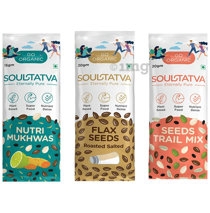 Information about Soultatva Combo Pack of Nutri Mukhwas 15gm, Flax Seeds Roasted Salted 20gm & Seeds Trail Mix 20gm (4 Each)