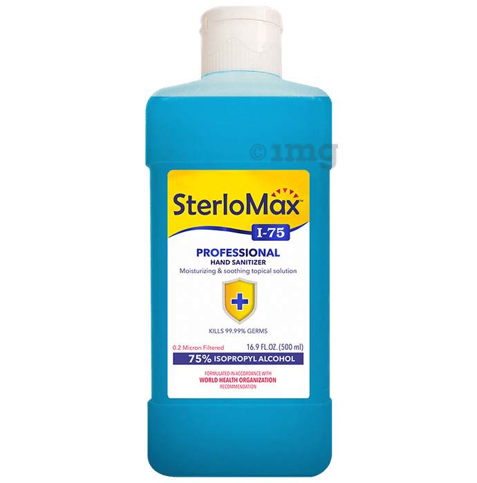 SterloMax I-75 Professional Hand Sanitizer is a liquid hand sanitizer formulated in accordance with the WHO (World Health Organization) recommendation, which contains 75% Isopropyl along with Glycerol and Hydrogen Peroxide. Glycerol in SterloMax I-75 Professional acts to preserve skin moisture and protects skin against dryness and keeps hands soft even after repeated use.