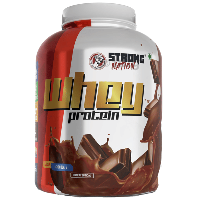 Strong Nation Supps Whey Protein - Chocolate is a health supplement that provides protein to the body and helps build lean muscles. It contains digestive enzymes that promote digestion and improves energy levels. This protein comes in a decadent chocolate flavour and has a smooth texture and mixability.