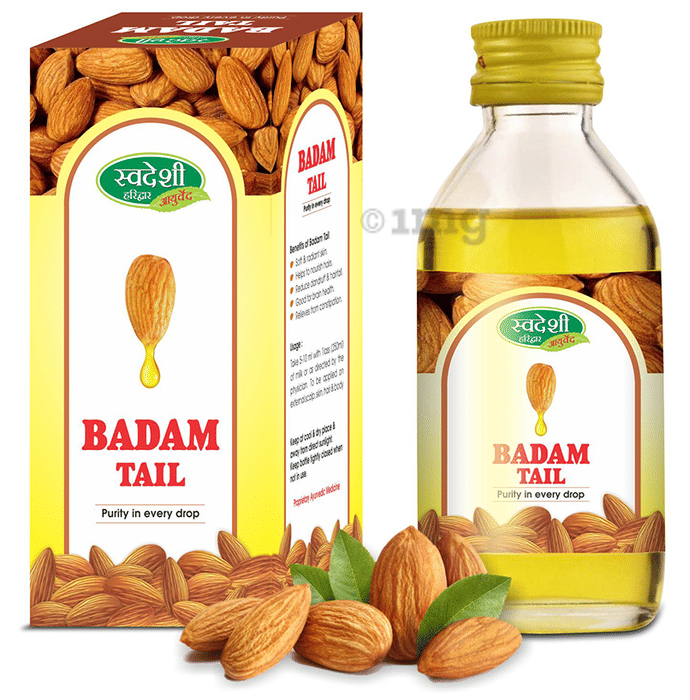 Swadeshi Ayurved Badam Tail is an Ayurvedic oil that contains the goodness of vitamin E and A. Regular massage of this oil reduces dandruff, hair damage and scalp infections. Vitamin E of almond oil helps in providing soft and beautiful skin. It keeps the body warm in winter. It improves cardiac health. This oil is also beneficial for children in providing better immunity and strong bones.