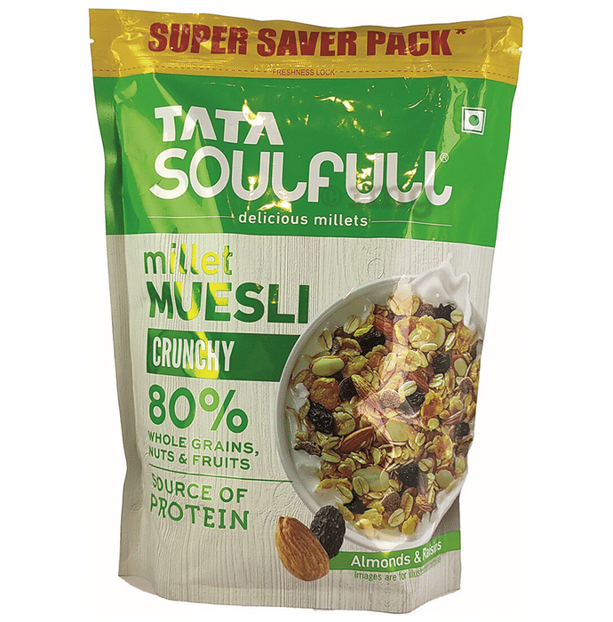 - Tata Soulfull Crunchy Millet Muesli is packed with chunky and delicious Nuts and Fruits along with 80% whole grains