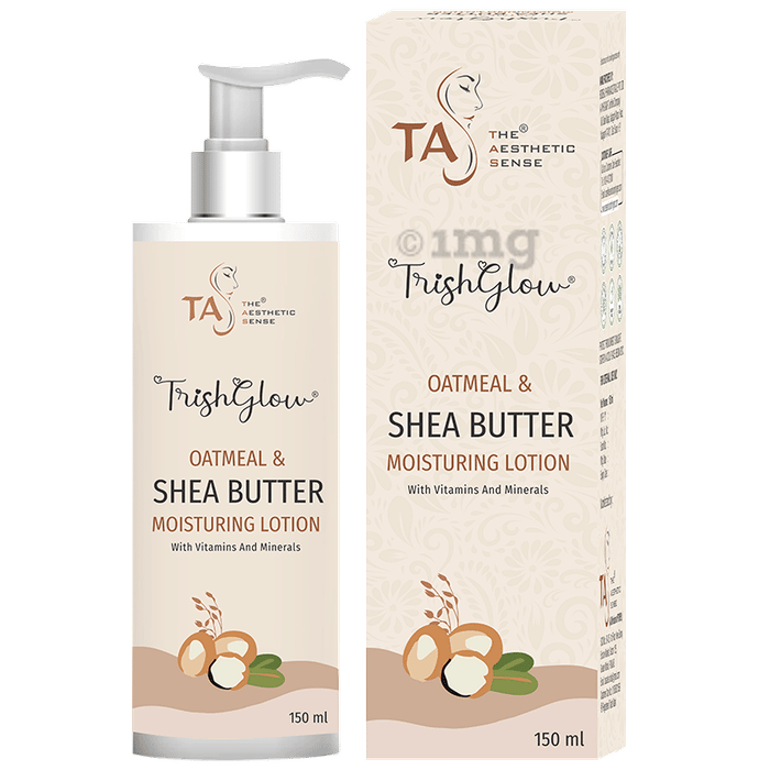 The Aesthetic Sense Trishglow Oatmeal and Shea Butter Moisturising Lotion is formulated with the goodness of oatmeal and shea butter, rich in vitamins A and E, minerals, and antioxidants that may help to restore the skin and boost the moisture content. Oatmeal and shea butter are two natural ingredients with moisturising properties. They are more beneficial for skin hydration and nourishment when combined with vitamins and minerals. Oatmeal is rich in compounds called beta-glucans, which can help to improve skin hydration and reduce inflammation. Oatmeal can also act as a natural exfoliant and may help in removing dead skin cells and promoting cell renewal. It can also help improve the overall texture and appearance of the skin. Shea butter is a highly emollient ingredient rich in fatty acids, which help lock in moisture and may reduce water loss from the skin.