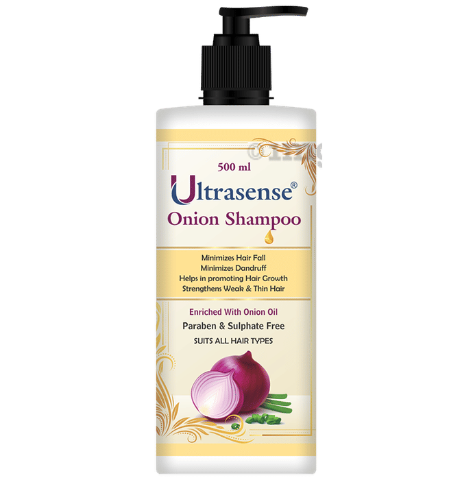 The Aesthetic Sense Ultrasense Onion Shampoo contains onion juice that may help promote hair growth, reduce dandruff, manage split ends, and thicken hair. The presence of onion may help to stimulate the scalp and help to promote circulation and growth. Onion extracts contain vitamins A, C, E, and B-complex, which can help to strengthen hair follicles and reduce hair shedding. It may also help to nourish the scalp and restore nutrients. It contains onion oil, which may promote growth and strengthen weak and thin hair.