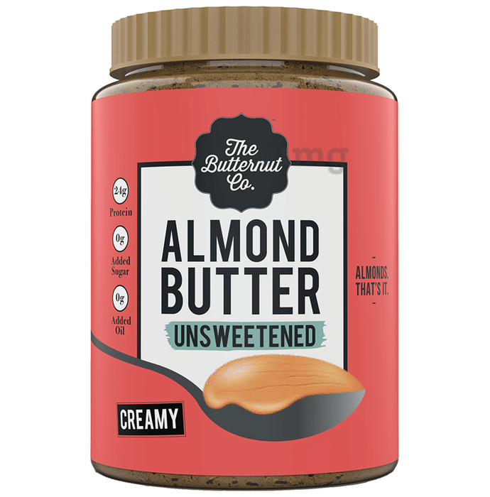 The Butternut Co. Almond Butter Unsweetened Creamy is 100 per cent pure almond butter that has been lightly roasted and twice milled in small batches for a delicate velvety texture. It contains jaggery and is gluten-free. It is high in nutrition and is good for everyone in the family because it contains no cholesterol or trans fats. The creamy spread is high in heart-healthy unsaturated fats and vitamins and minerals.