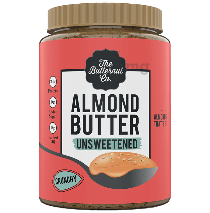The Butternut Co. Almond Butter Unsweetened Crunchy is 100 per cent pure almond butter that has been lightly roasted and twice milled in small batches for a delicate velvety texture. It contains jaggery and is gluten-free. It is high in nutrition and is good for everyone in the family because it contains no cholesterol or trans fats. The creamy spread is high in heart-healthy unsaturated fats and vitamins and minerals.