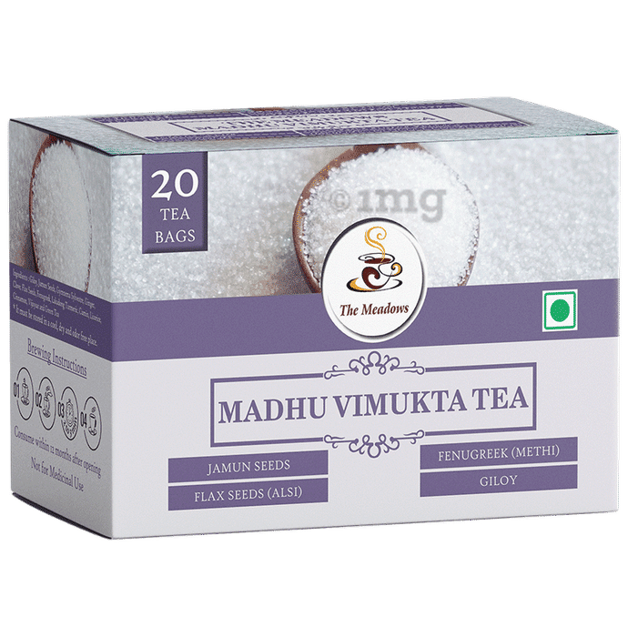 The Meadows Madhu Vimukta tea is a sugar metabolism masterpiece. The box contains 20 tea bags. This sugar metabolism masterpiece is your natural ally in the journey to maintain healthy blood sugar levels. Carefully crafted with a blend of thoughtfully selected herbs and ingredients, this tea is designed to support your overall well-being.
