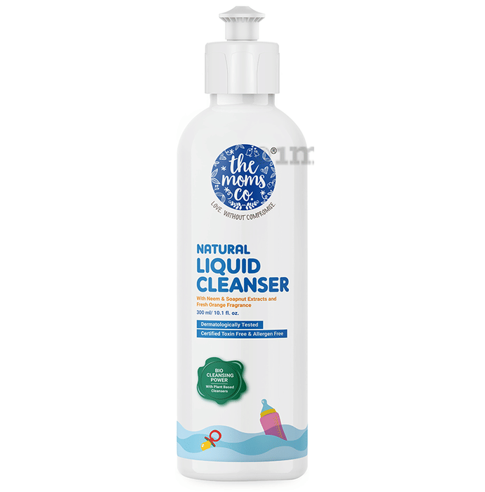 The Moms Co. Natural Liquid Cleanser removes the toughest milk residues, grease and odour. This dermatologically tested liquid cleaner is enriched with soapnut and neem extract that helps keep bacteria away, making it ideal for cleaning baby bottles, feeding accessories, pacifiers, toys, fruits and vegetables.