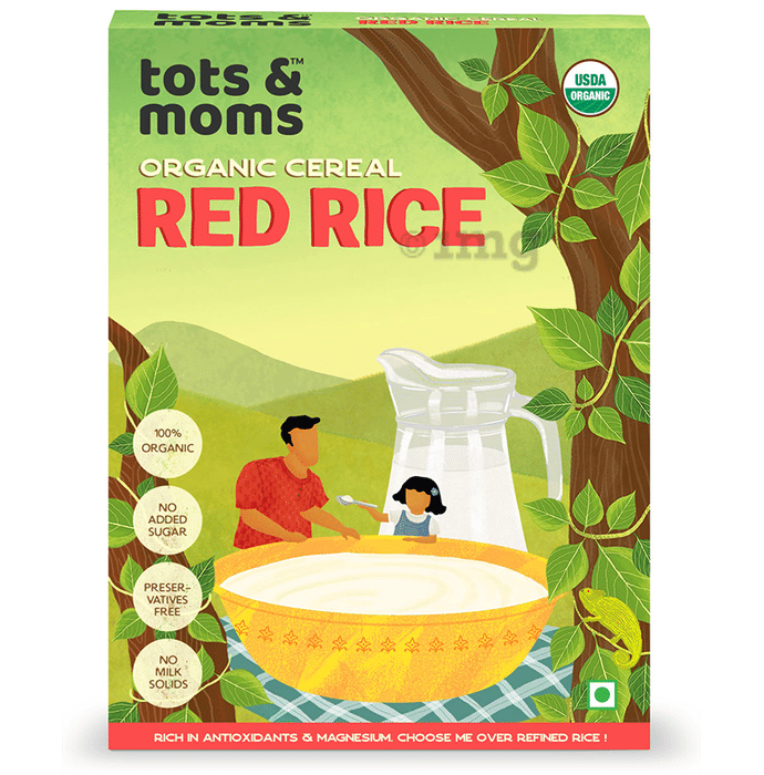 Tots and Moms Red Rice Organic Cereal 6 Month+ is a Stage 1 baby food with easily digestible ingredients. It is a wholesome and nutritious cereal made with 100% organic red rice. This cereal is rich in antioxidants, vitamins, and essential nutrients, supporting healthy growth and development in children. Unlike polished white rice, red rice retains its natural nutrients and fibre, making it an excellent choice for digestive health and overall well-being. The creamy texture makes it a perfect breakfast or snack option, providing sustained energy for active days.