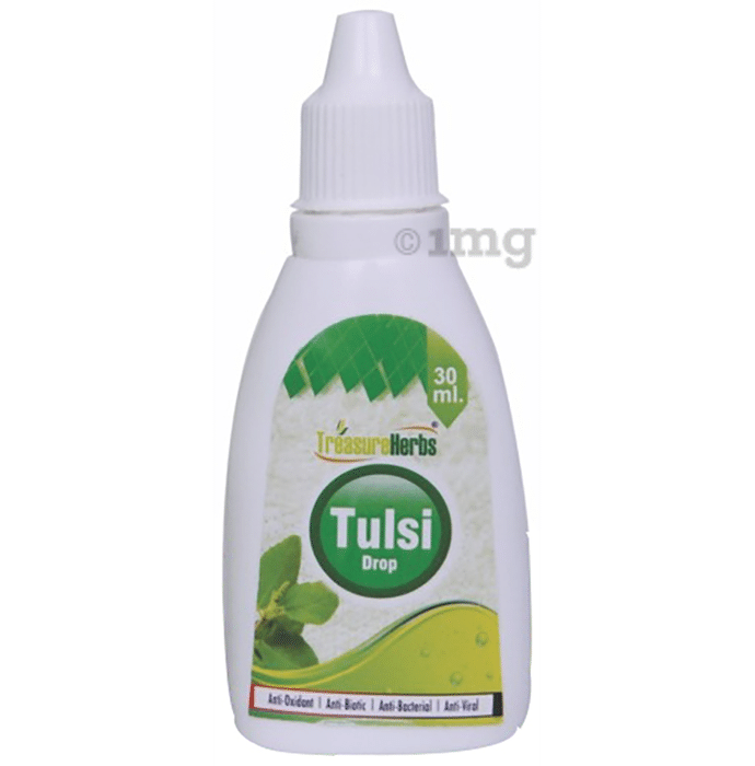 TreasureHerbs Tulsi Drop is antibacterial and suitable for cold and cough. It is formulated with natural ingredients.