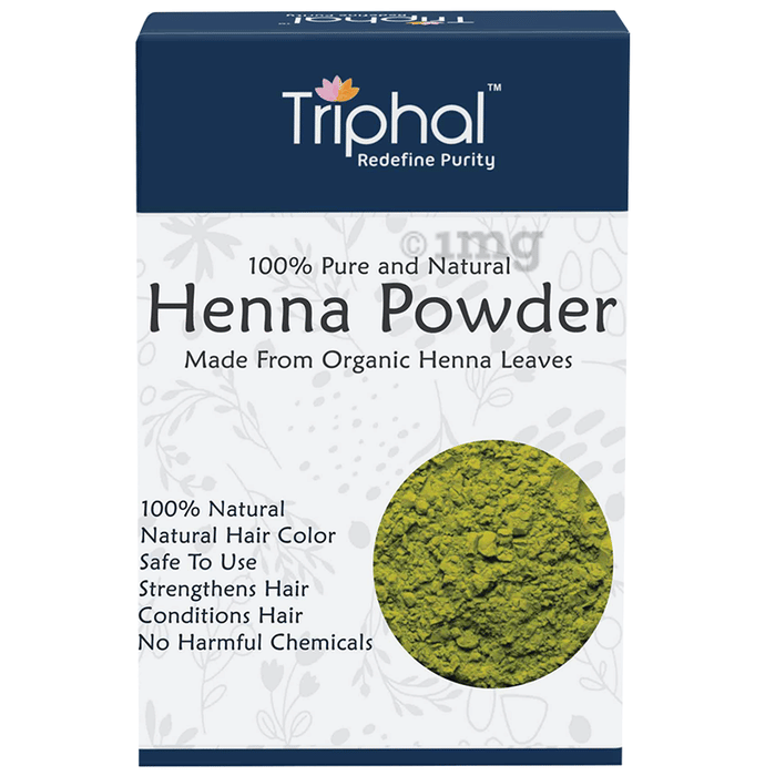 Triphal 100% Natural Henna Powder is beneficial in promoting healthy hair growth. It helps to prevent dandruff and removes excess oil on the scalp. Henna Leaf is known to provide relief in skin conditions like itching, allergies, skin rashes and wounds.