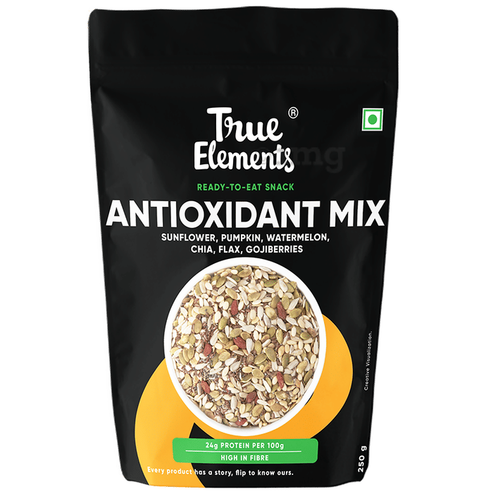 True Elements Antioxidant Mix is a combination of sunflower, pumpkin, watermelon, flax and chia seeds, along with goji berries to boost the immune system. When roasted to perfection at minimal temperatures, these seeds provide a fibre-rich crunch to the palate, thus making it a tasty yet healthy snack.