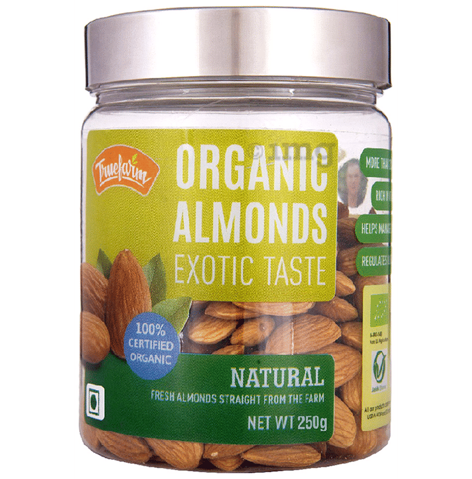 Truefarm Organic Almonds acts as a natural rejuvenator and contains a high nutritional value. It is beneficial for improving eyesight and developing sharp memory. They offer a healthy and tasty alternative to fuel our active lifestyle.