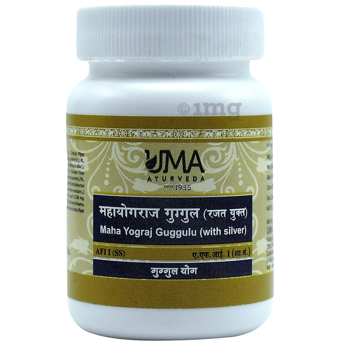 Uma Ayurveda Maha Yograj Guggulu (with Silver) Tablet is an ayurvedic formulation that might be used to treat joint pain and related issues. It may be beneficial in skin diseases, piles, diabetes, fistula, and decreased digestive power.