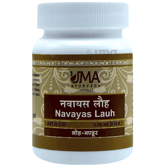 Uma Ayurveda Nawayas Lauha Tablet is a formulation with natural herbs in vati/pill form. The Nawayas Lauh Tablet is a well-known navayasa churna. It is an ayurvedic herbomineral medication. Nava is a word that signifies "nine ingredients." Ayas is the Arabic word for iron. It is effective in the management of liver problems. It helps to deal with respiratory illnesses. It helps with anaemia, heart diseases, skin diseases, piles, and liver infections. It is effective for dropsy, dyspepsia, appetite loss, and diabetes. It possesses liver-protective properties.