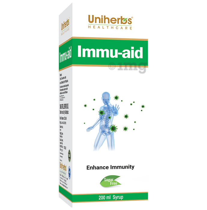 Uniherbs Immu-Aid Syrup Sugar Free is a scientifically created herbal formula to strengthen the immune system and prevent infections, and soothe cough, cold, sore throat, breathing problems, body pain, fatigue, and autoimmune diseases. Guduchi enhances the function of white blood cells of the immune system. With immunomodulating properties, Neem helps fight all types of infections through antibacterial and antifungal effects. Tulsi extract is replete in Vitamins C and zinc, enabling T helper cell and natural killer cell activity. Sonth is an anti-inflammatory and antibacterial remedy that ensures a healthy immune system. With immunosuppressive and curative effects, Trikatu is ideal for treating autoimmune inflammatory disorders. Complete with Amla, Ashwagandha, Guduchi, Kutki, Mulethi, Gugglu, Aloe, and Triphala, this herbal mix keeps the body healthy all year round and enhances the sense of wellbeing.