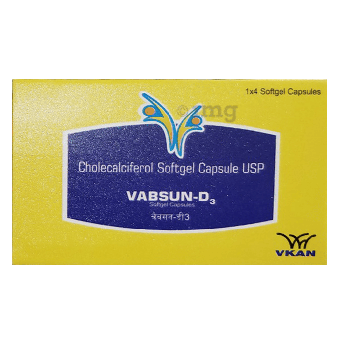 Vabsun-D3 Softgel Capsules is primarily used to combat calcium and vitamin D3 deficiencies which are necessary for healthy bones and teeth and enables the body to stay fit.