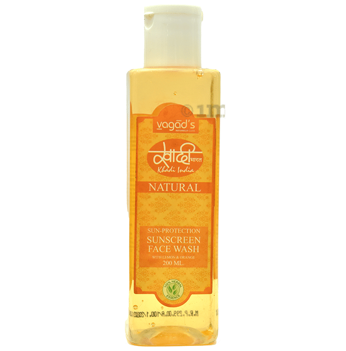 Vagad's Khadi India Natural Sunscreen Face Wash with Lemon & Orange is a face wash that protects from the sun's harmful rays while soothing the skin. It helps protect the skin from tanning.