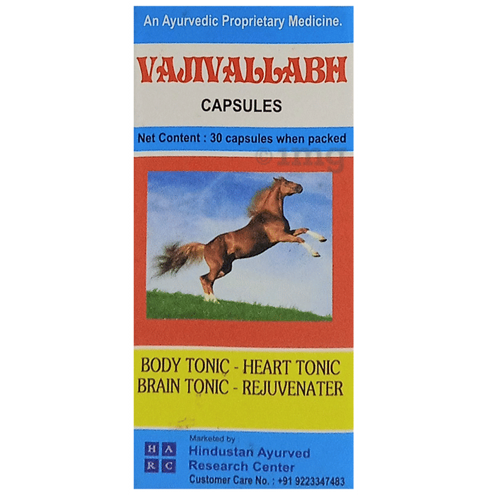 Vajivallabh Capsule is an ayurvedic capsule which helps to increase the energy and stamina of the body while reducing stress. It helps to enhance physical performance and promotes muscle strength and endurance. It helps to improve power and vigour. It also helps with post-performance weakness.