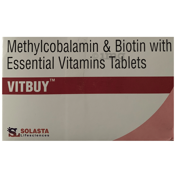 Vitbuy Tablet is a combination of methylcobalamin biotin and multivitamins. It can help manage nutritional deficiency anaemia. Its key ingredients, including ascorbic acid, niacinamide, pyridoxine hydrochloride, folic acid, pantothenic acid, riboflavin, thiamine hydrochloride, methylcobalamin, and biotin, contribute to a range of health benefits.