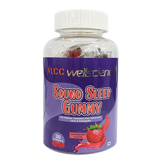 VLCC Wellscience Sound Sleep Gummy Strawberry is a wellness gummy that promotes healthy sleep and improves sleep quality. It has a sleep-support formula with melatonin, valerian root extract and ashwagandha that enhances peaceful sleep. These gummies are 100% vegetarian and free from gluten, artificial flavour or colour.