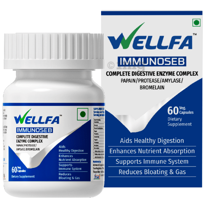 Welfare Medical Immunoseb Capsule is a complete digestive enzyme complex developed to improve digestive function. It contains ingredients like papain, protease, amylase and bromelain that enhance nutrient absorption. The formulation helps to improve the health of the immune system. It helps to reduce the formation of gas and relieves bloating. It breaks down nutrients for better absorption and prevents constipation.