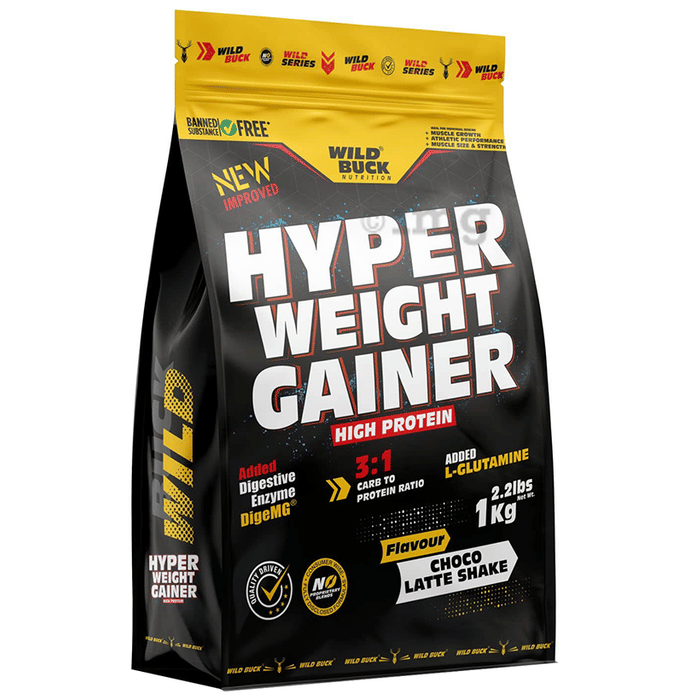 Wild Buck Hyper Weight Gainer Powder is a potent formulation that enhances the absorption of protein and carbohydrates in the body. It increases stamina, energy, and strength. It is also helpful for assisting muscle recovery. It is available in many flavours.