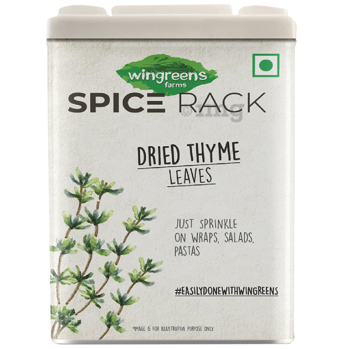 Wingreens Farms Spice Rack Dried Thyme Leaves (30gm Each) are fresh and extracted from the finest farms. Thyme has immunity-boosting and blood pressure-lowering properties. It is 100% vegetarian and does not contain harmful preservatives or artificial ingredients. The delicious dried thyme is perfect for sprinkling on salads, wraps and pasta. It goes well with meat, beans, tomatoes and offers an earthy and aromatic flavour. It lowers blood pressure and relieves colds.