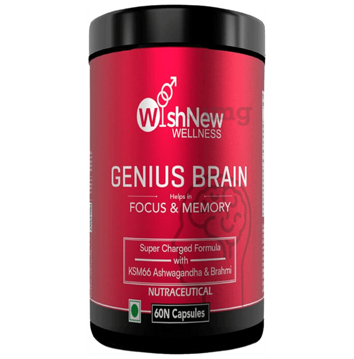 Wishnew Wellness Genius Brain Capsule is a supercharged nootropic blend designed to support focus, memory, and mental clarity. Combining key ingredients like KSM66 Ashwagandha, Brahmi, and Ginkgo Biloba, this supplement may help improve brain power and cognitive function. It also contains L-Tyrosine, L-Theanine, and Caffeine to support alertness and mood. With regular use, you may experience sharper focus, better memory retention, and overall mental performance. Take 1-2 capsules daily for the best results. Suitable for anyone looking to support brain health and cognitive sharpness.