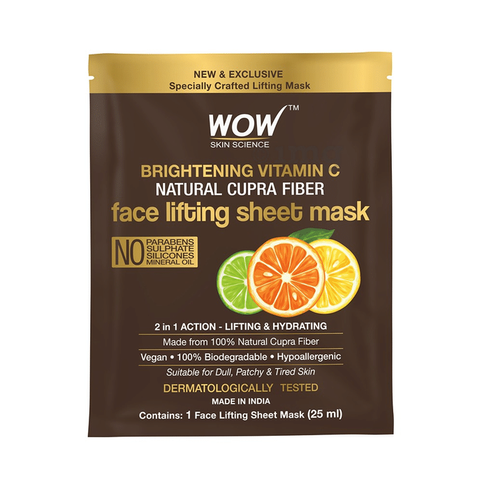WOW Skin Science Brightening Vitamin C Natural Cupra Fiber Face Lifting Sheet Mask (25ml)