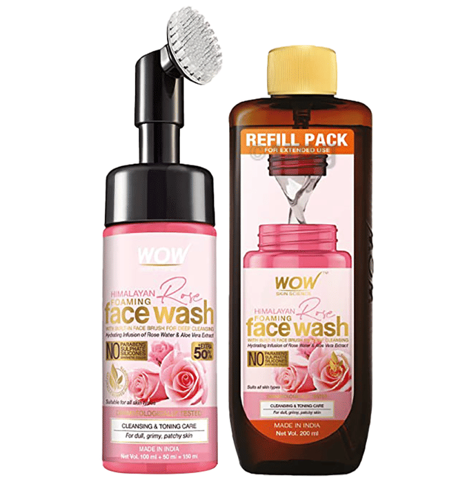 Information about WOW Skin Science Combo Pack of Himalayan Rose Foaming Face Wash 150ml with Refill Pack 200ml with Built-In Face Brush