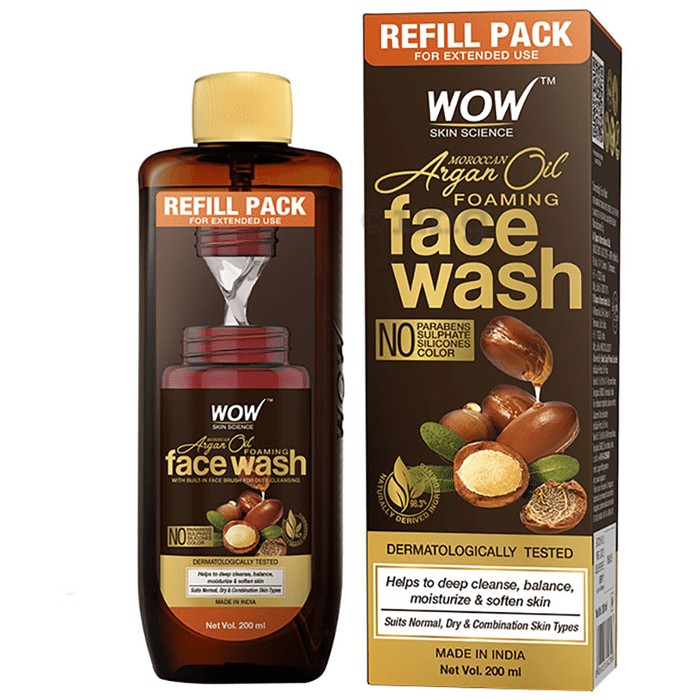 WOW Skin Science Moroccan Argan Oil Foaming Face Wash Refill Pack helps provide cleansed, moisturised and glowing skin. It delivers the goodness of argan oil, aloe vera extract, vitamin E and pro-vitamin B5