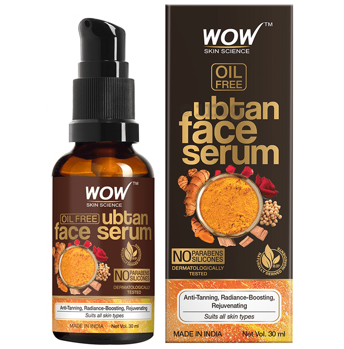 WOW Skin Science Ubtan Face Serum- 30mL is super light and soaks into the skin quickly. It helps to repair skin damage, tone the skin, minimize fine lines, smoothen and enhance skin texture, and improve skin luminosity. It suits every skin type and is ideal for pigmented, dull, and dry skin