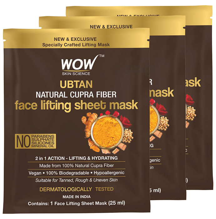 Information about WOW Skin Science Ubtan Natural Cupra Fiber Face Lifting Sheet Mask (25ml Each)
