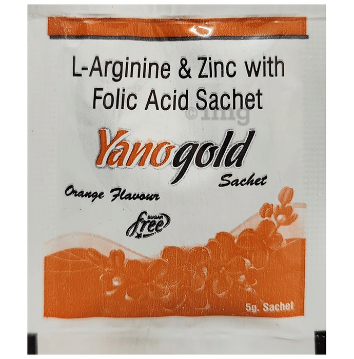 Yanogold Sachet Orange Sugar-Free is a dietary supplement formulated with amino acids. L-Arginine is an essential factor in muscle metabolism and is a precursor for nitric oxide, which increases circulation by relaxing blood vessels.