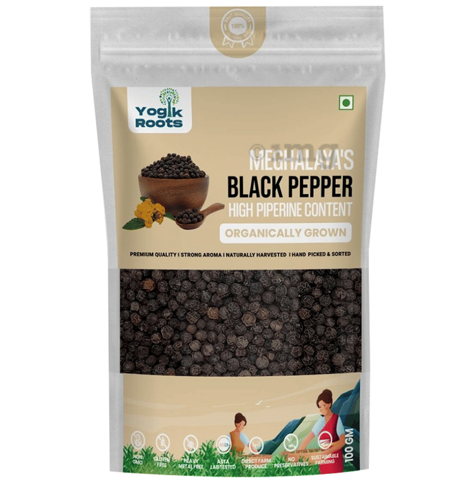 Yogik Roots Meghalaya's Black Pepper is sourced from Garo hills of Meghalaya that contains antioxidants and anti-inflammatory properties. Black pepper is a versatile spice that can be used for cooking and eating in multiple ways. It is commonly used to treat digestive problems. It is also used in the treatment of arthritis and bronchitis. Black pepper may help in regulating blood sugar and cholesterol levels.