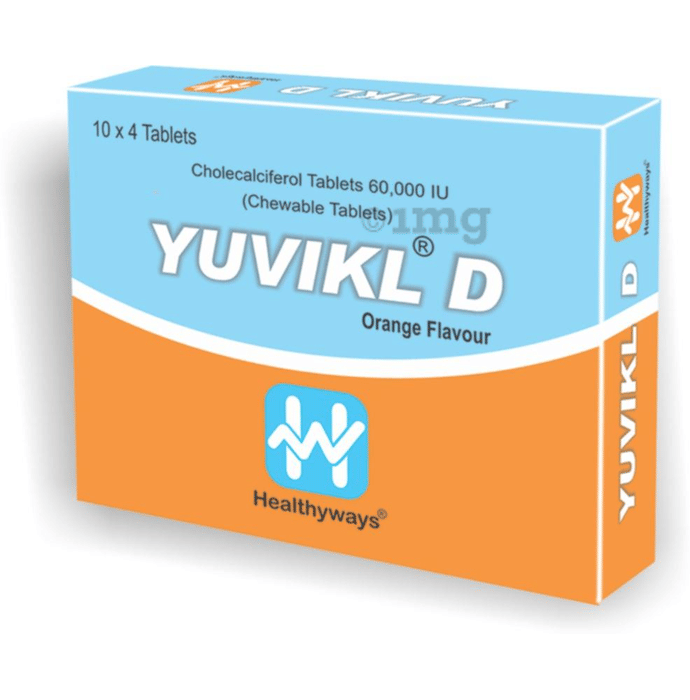 Yuvikl D Tablet is a Vitamin D3 supplement, contains Cholecalciferol as an active ingredient. It is a nutritional replacement therapy to increase low Vitamin D3 levels in the body.