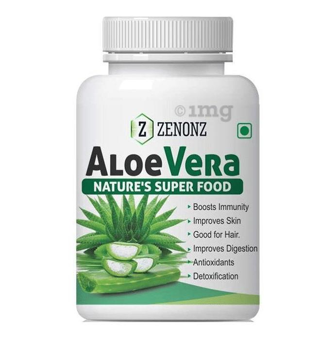 Zenonz AloeVera Capsule contains Aloe vera, an ayurvedic herb which has various health benefits.Aloe vera is enriched with essential Amino acids and provides vitamins and essential minerals.It helps in improving digestion and immunity.It helps in healthy weight management and detoxification of the blood.It has anti-ageing and healing properties and is beneficial in maintaining healthy hair and skin.