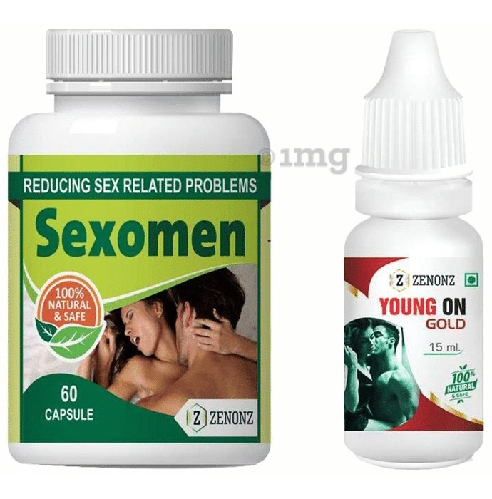 Zenonz Combo Pack of Sexomen 60 Capsules & Young On Gold 15ml helps enhance men's health and reproductive well-being.