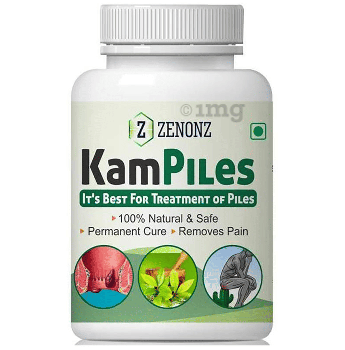 Zenonz Kam Piles Capsule is a dietary supplement formulated with ashwagandha, ginger, nirgundi and other ayurvedic herbs that help relieve symptoms of haemorrhoid and bleeding piles. Its anti-inflammatory and analgesic properties help soothe itching and reduce inflammation.