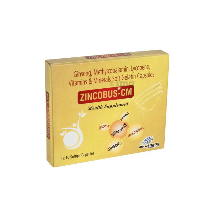 Zincobus -CM Soft Gelatin Capsule is a combination of Methylcobalamin and essential vitamins and nutrients for the proper functioning of the nervous system. It is effective in the treatment of Depression, Diabetes, Bells palcy and other neurological disorders.