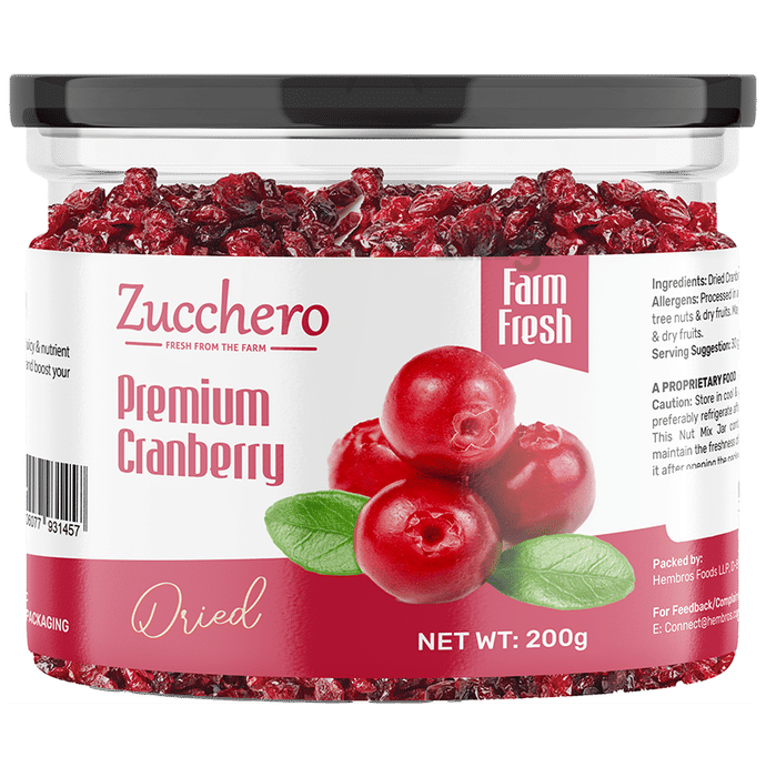 Zucchero Premium Cranberry Dried is a delightful and tangy treat that captures the natural tartness and vibrant flavour of cranberries. These cranberries are carefully dried to preserve their juicy and intense taste, offering a delightful snacking experience. With their chewy texture and rich flavour, zucchero premium cranberry dried is a convenient and healthy option for satisfying your cravings. Enjoy the premium taste of these dried cranberries and indulge in a burst of fruity goodness.